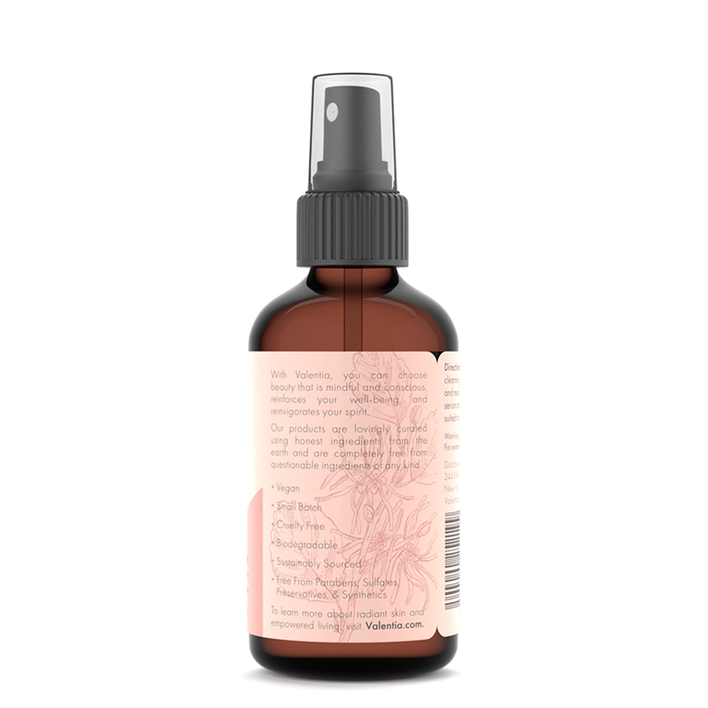 After cleansing, mist over face and neck. Gently pat into skin to hydrate and revitalize the area.