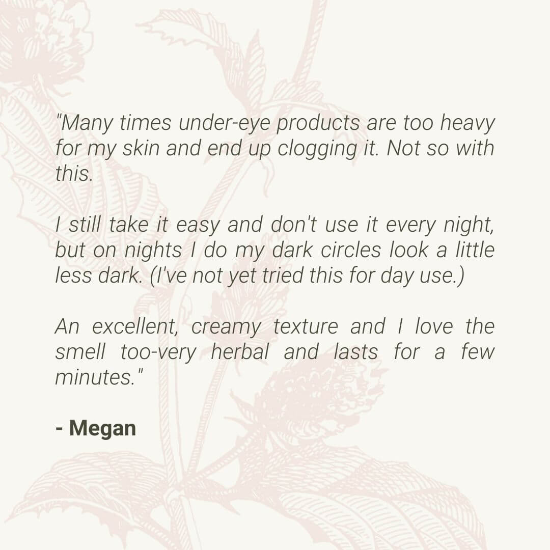 Our eye cream is made only from the finest natural ingredients, to give your skin the support it needs without the use of unnecessary artificial ingredients that can compromise your health.
